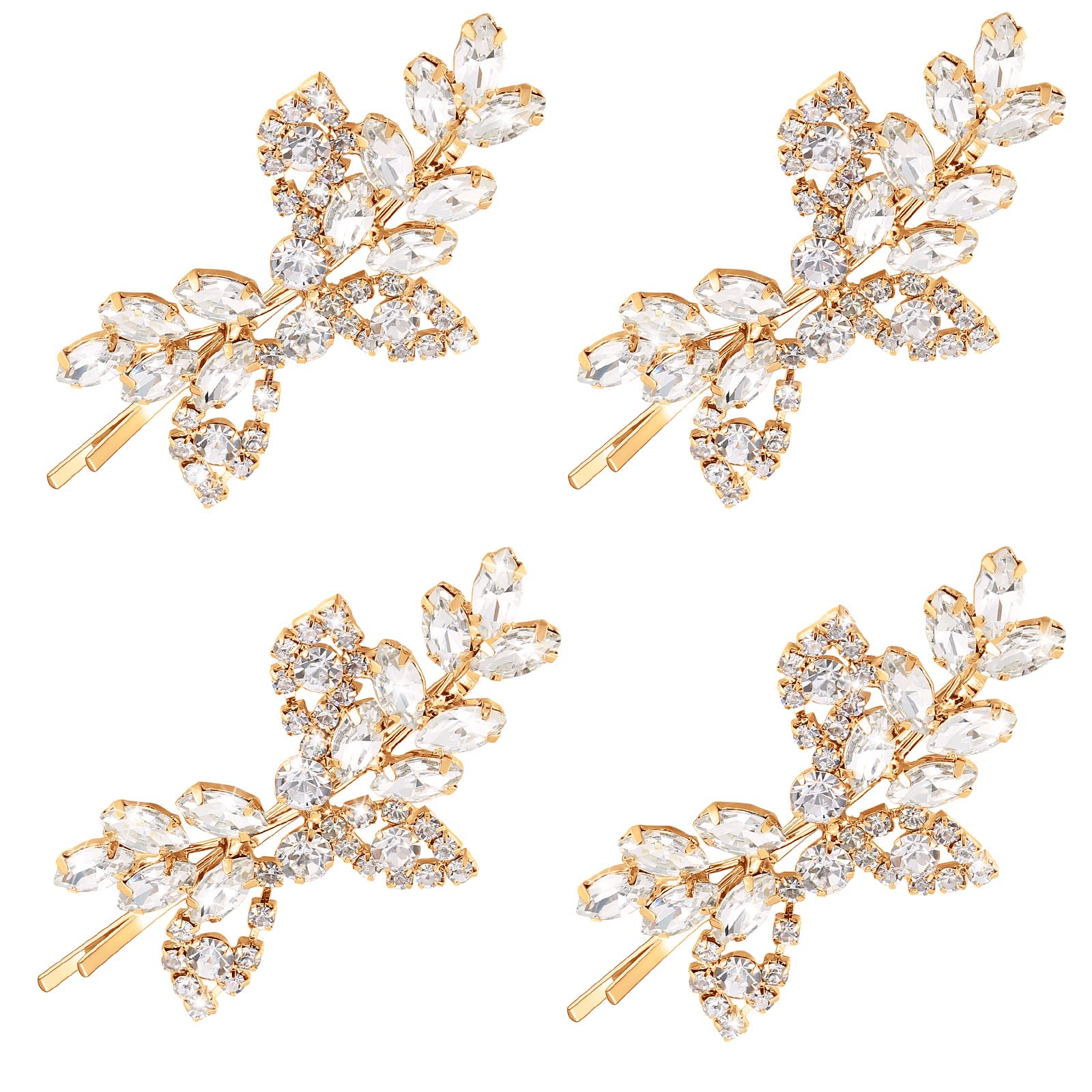 4 Pieces Rhinestone Bridal Hair Clip Leaf Wedding Hairpin Bride Pearl Crystal Hair Clips Rhinestone Barrette Elegant Bridal Hairpins Hair Accessories for Women Girls(Gold,Rhinestone Style)