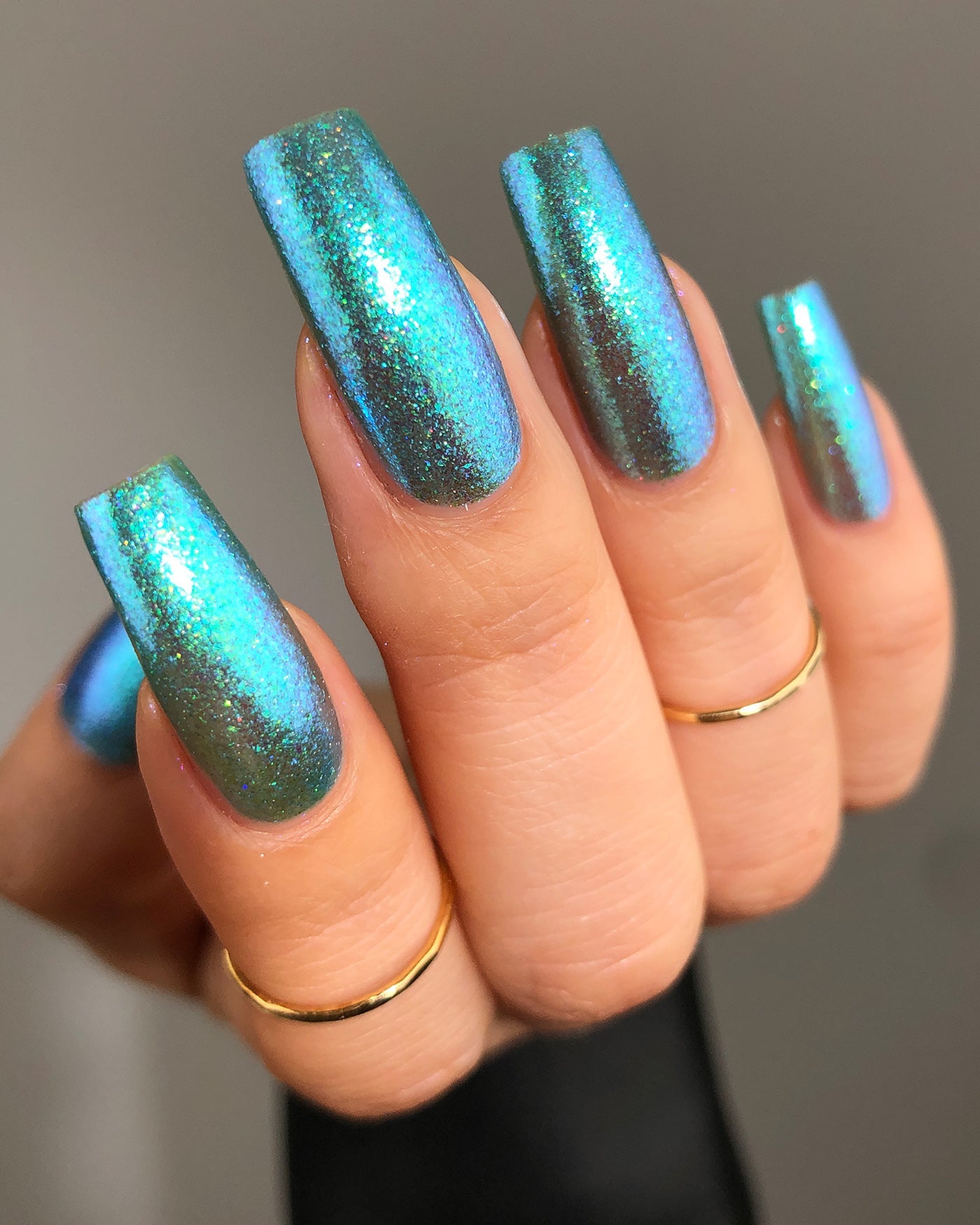 wait a second. did a “mermaid” tell you to meet them here at “CRYSTAL LAKE,” too? ha ha. awkwarddd... bc no matter when or where or how you view this ever-shifting blue creature it never seems to look quite the same as before. and that’s oh-so-deliberately by design. thanks to its beautifully briny, ULTRA-fine flakie-packed formula, it perma-morphs between transfixing waves of teal, blue, and green hues. sure, i think it’s safe to say that this shade’s no lake - it’s more of an epic, sprawling, ocean-sized blue tincture filled with truly unfathomable mystery. consider us pleasantly deceived.CATFISHED is an ocean blue lacquer jam-packed with blue ULTRA-fine flakies and super micro holographic glitter. from the MERMAID TALES SET.