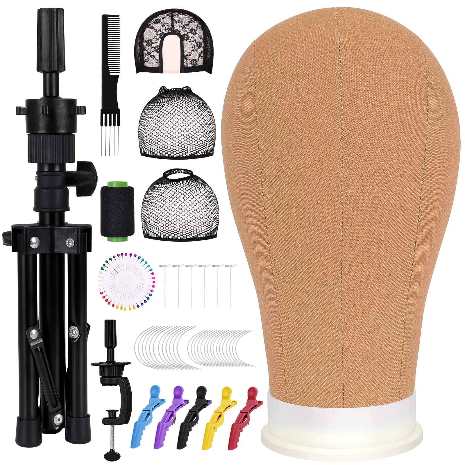 cenoz 22 Inch Wig Head, Canvas Mannequin Head for Wigs, Wig Stand Tripod with Head, Manikin Canvas Head Block Set for Wigs Making Display with Wig Caps, T Pins C Pins Set Bristle Brush