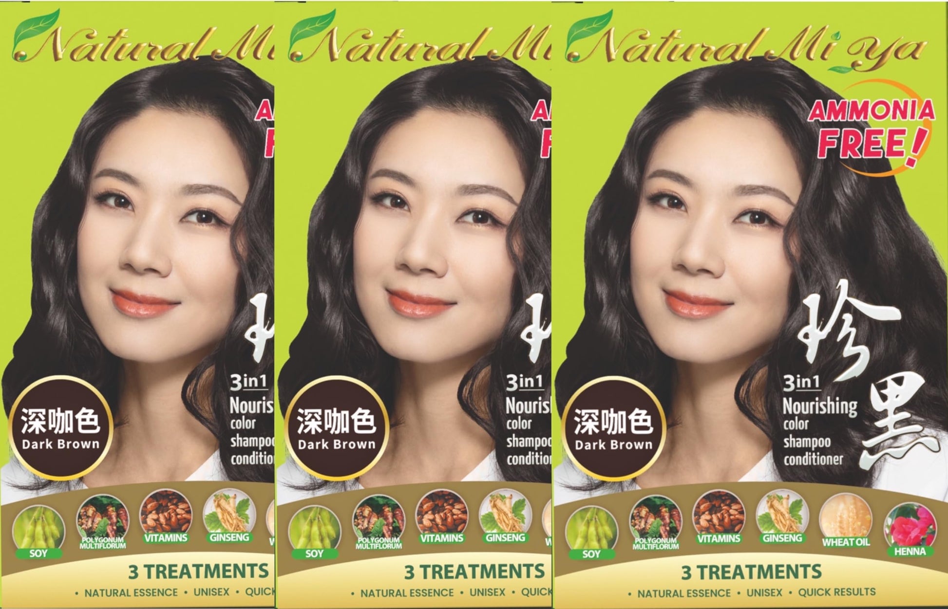 Natural Mi Ya Hair Color, Natural Hair Dye & Nutrition by Henna, Herbal Hair Color Colorants, No Ammonia, No Heavy Metals, Unisex (3 Pack, Dark Brown)