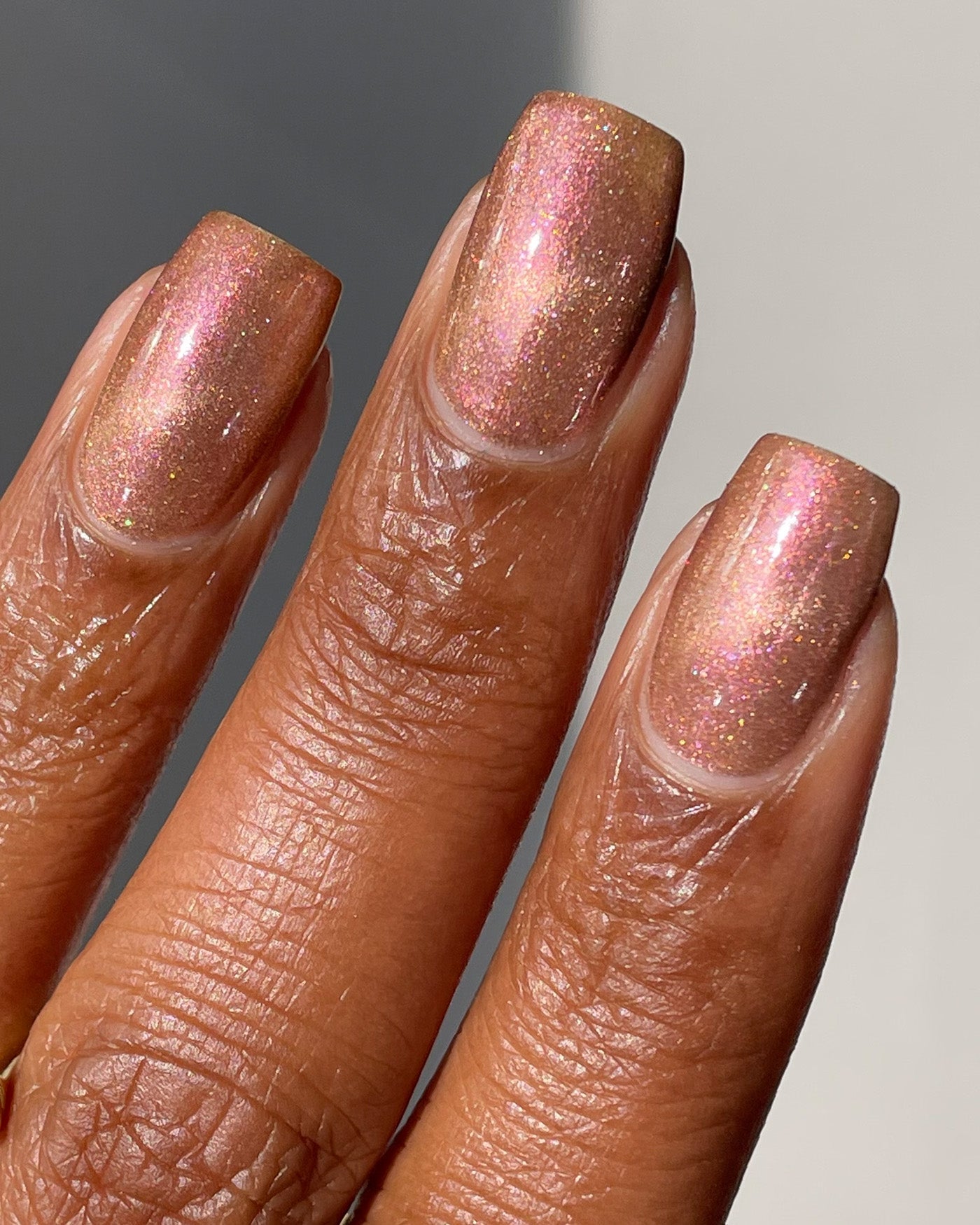 this rose gold lacquer is like a treasure from distant lands. watch this lacquer gleam in the light to capture a bit of that magic for yourself.
