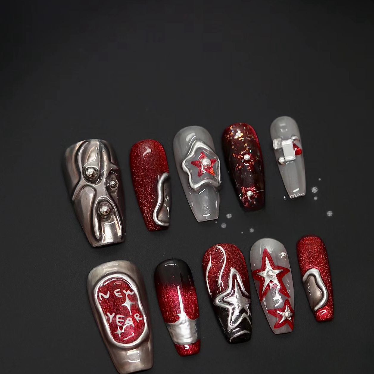 Step into a world of timeless elegance and rock-and-roll edge with our extraordinary wearable armor. This unique piece combines the richness of vintage red, the mystique of pentagrams, the festive charm of "New Year" scripted details, and the rebellious spirit of heavy metal-inspired design.