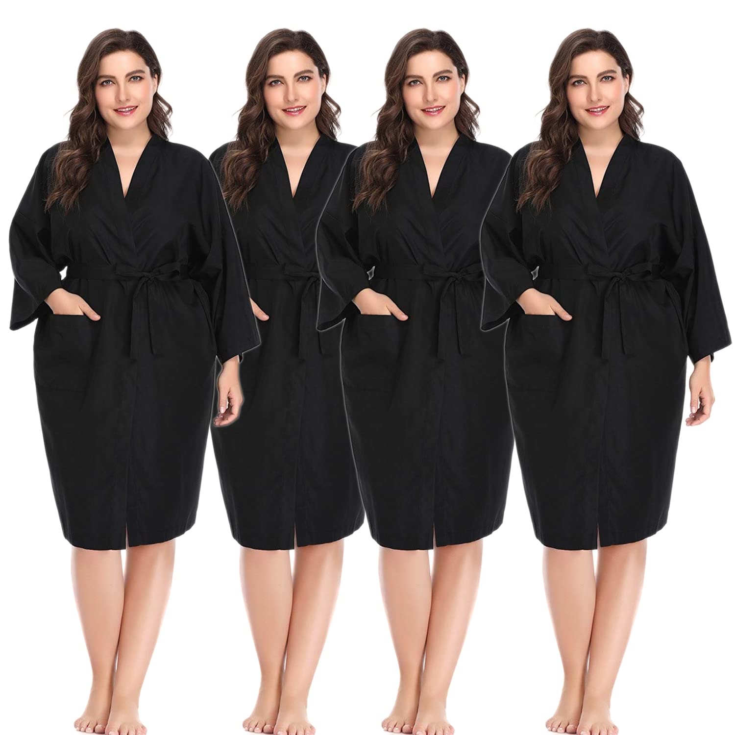Details: [Pack of 4] Large salon robes for client- Black. Soft, light & comfortable polyester Material. Chest: 55 inch, Length: 42 inch . Weight: 7.4 oz (210g) per piece. Large enough for most people. Both for men or women. Adjustable tie waist belt, One Large front pocket; Machine washable, Dry quickly.