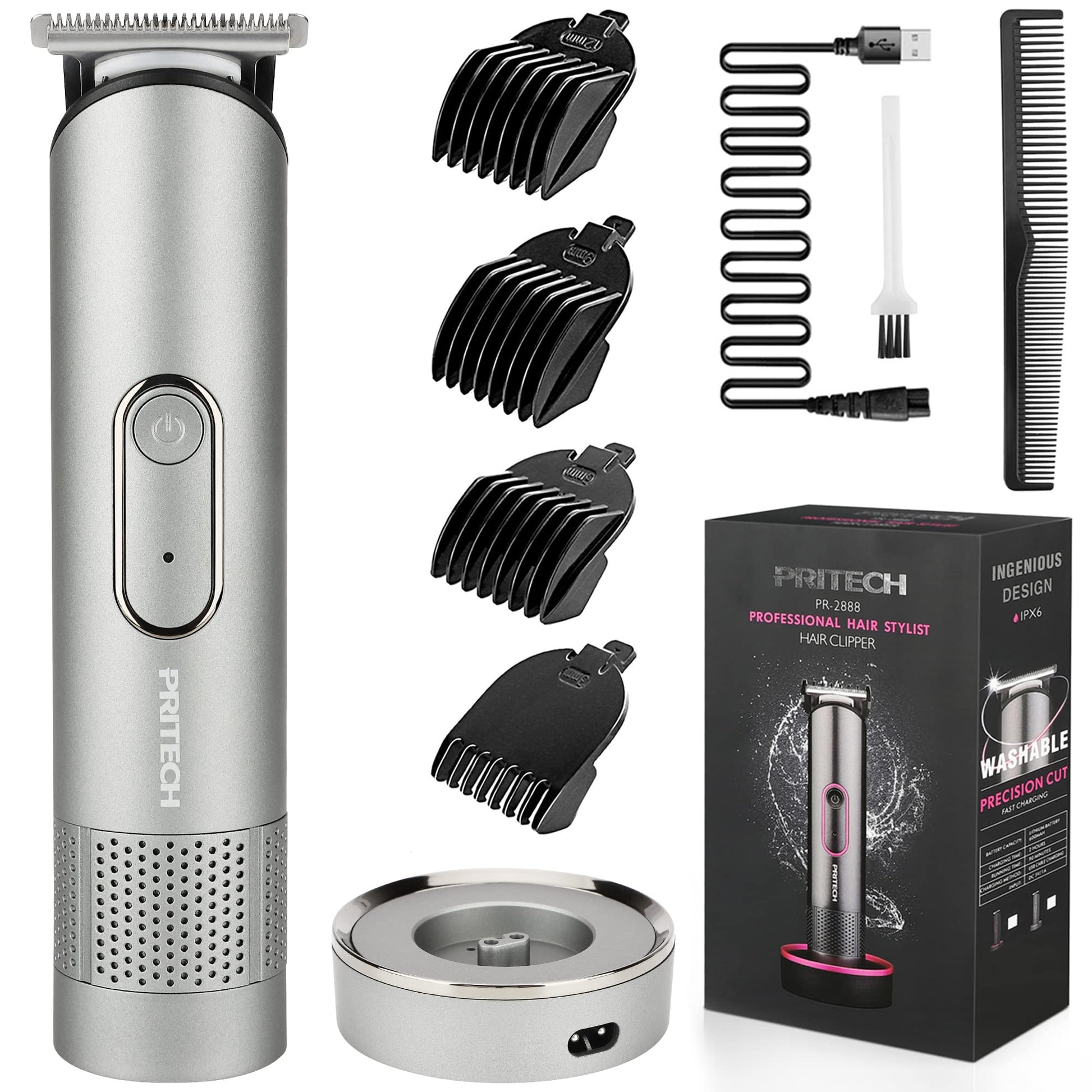 PRITECH Hair Trimmer for Men, Electric Groin Hair Trimmer, Rechargeable Hair Clippers, Cordless Men's Beard Trimmer, Waterproof Body Trimmer with Standing Recharge Dock, Nebula Gray