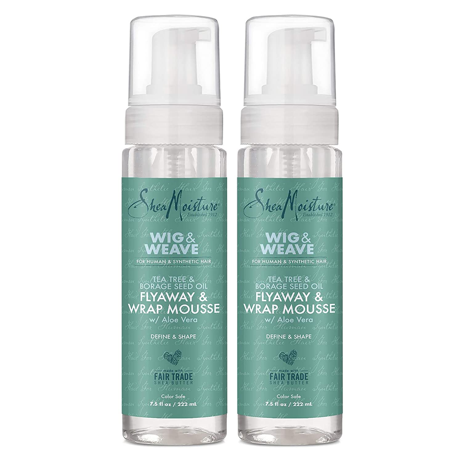 SheaMoisture Flyaway & Wrap Mousse for Wigs, Weaves & Hair Extensions, Tea Tree Oil, Borage Seed Oil, Aloe Vera, Define Curly Hair, Add Volume or Smooth Straight Styles, 2 Pack – 7.5 Fl Oz Ea
