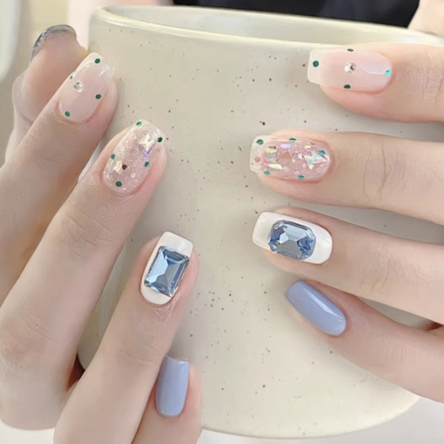 Unleash your inner sweetness and spice with our mesmerizing Blue Agate press-on nails, now available. Handcrafted with precision, these nails boast a refreshing ice blue hue, exuding both innocence and allure.