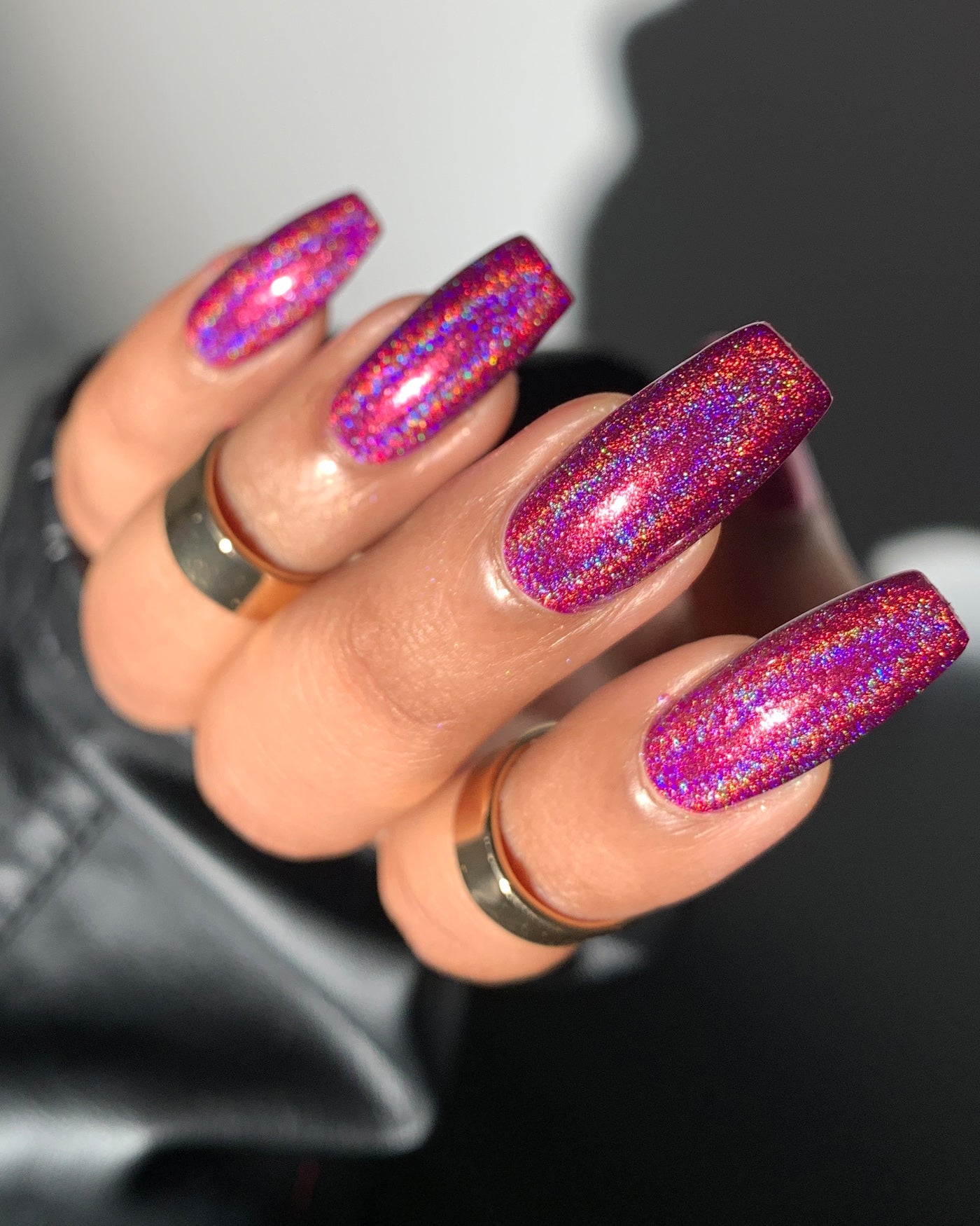 VENUS FLYTRAP is a magenta linear holographic lacquer. from the HEAVY IS THE CROWN collection.