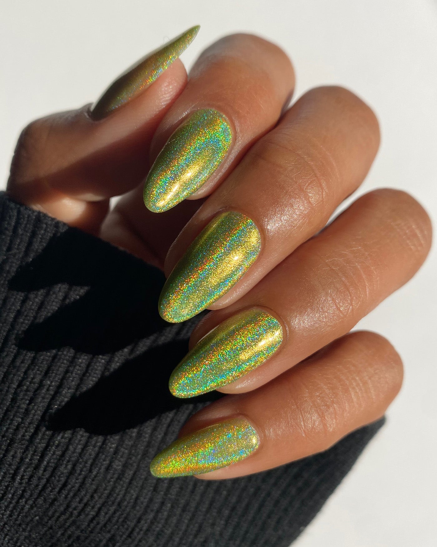 note: holographic lacquers look best in the sunlight or under a direct light, where they reveal their full rainbow effect. in the shade or overcast conditions, the effect will be more muted (but still mesmerizing).